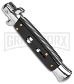 9″ Anomaly Stiletto Black Pearlex Automatic Knife – Satin Bayo
