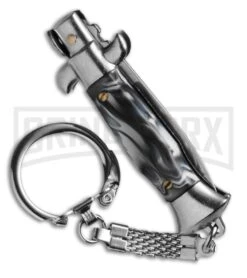 SKM 4″ Italian Stiletto Gray Acrylic Automatic Knife Keychain – Bayo