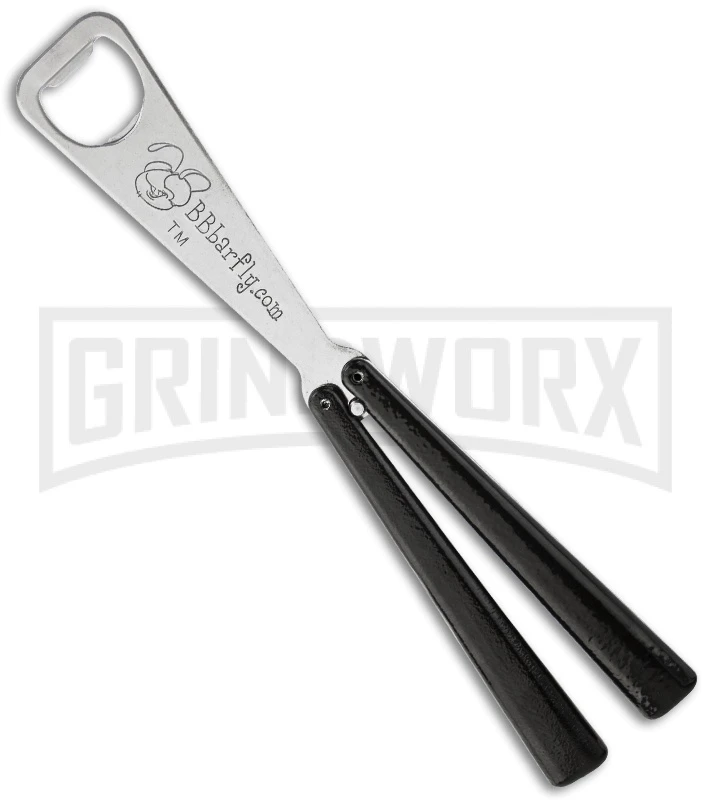 Make your bottle opening a memorable experience with the BB Barfly Bottle Opener. This dual use bottle opener features solid black handles and a thick stainless steel bottle opener ‘blade’ with BBbarfly.com stamped on both sides.