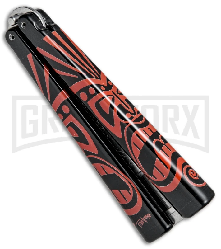 Andux CS Black Balisong Butterfly Trainer – Cracked Red Holes