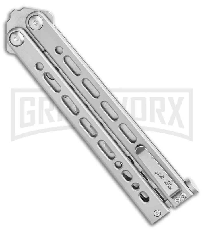 Dropping with a bang into the knife world is the Bear Song VIII from Bear Ops. Experience flipping action like never before—via the use of ball bearings, the Bear Song VIII has managed to obtain flawless, smooth motion while eliminating blade-play completely. That’s right: the Bear Song VIII has no play in the blade whatsoever. It features a bead blasted trainer blade, gray steel handles that are milled to be light-weight, and is topped off with a removable pocket clip on the safe handle and a spring-loaded latch on the bite handle. This is a bali for beginners and veterans alike.