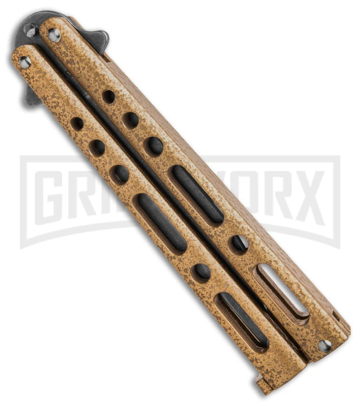 Benchmark Gold Epoxy Steel Butterfly Knife - Stonewash Plain