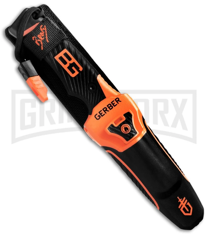 Based off of Gerbers original Ultimate Fixed Blade, the new Ultimate Pro Fixed Blade takes the Survival category to another level. With premium steel and full tang construction, this knife is meant to take a beating. Featuring a full fine edge and an easily accessible carbide pull-through sharpener integrated into the sheath, the Ultimate Pro will always be sharp when you need it most. The vertically mounted ferrocerium fire starter is sure to provide a spark in all conditions while the updated whistle ensures youll always be heard. Bears Priorities of Survival Pocket Guide fits securely in the sheath, making this the ultimate in survival gear.