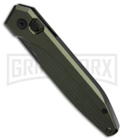 This Schrade SC60DT is an automatic conversion knife. A push of the firing button deploys the blade; no nudge needed. Push that same button again to release the blade and manually close it. This knife has a tanto blade with a plain cutting edge. The handle is desert camo finished aluminum with scalloped finger grooves for optimal grip. Includes pocket clip and glass breaker tip.